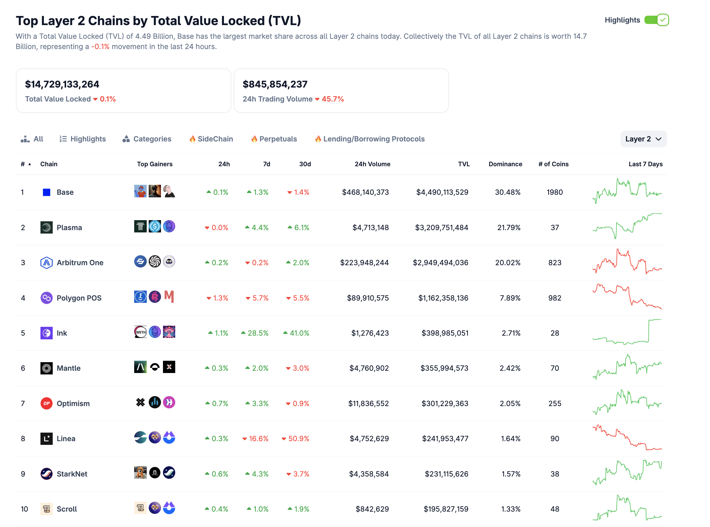 The Solution: The market has accepted this trade-off by building Layer 2 networks (like Base, Plasma, Arbitrum and which feature prominently in the L2 TVL rankings) on top of Ethereum. These L2s inherit Ethereum's security while solving the scalability issue, allowing Ethereum to remain the ultimate source of trust while its ecosystem scales.